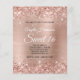 Um artigo de orçamento barato, sem envelopes, com um rico glamouroso, um convite para comemoração de 16 anos para ela. Brilhante brilhante rosa dourado com luz esmaecida contra uma pincel pálida fraca e imagem gráfica ombre do shimmer dourado rosa que impressão como uma foto. Você também pode personalizar o texto "Sweet 16" para outros eventos. Todos os elementos brilhantes e brilhantes neste moderno design feminino são gráficos digitais.