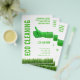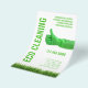 Modelo de folheto profissional personalizável para serviços de limpeza de casas residenciais ou comerciais e produtos ecológicos compatíveis com o ambiente, com design verde branco e fresco, com uma mão na luva de borracha, dando polegares. Clique em "personalizar" para acessar a ferramenta design e personalizá-la com suas próprias informações em ambos os lados, para ajustar o layout ou escolher um tamanho de folheto diferente. Cartões de visitas correspondentes também disponíveis: