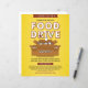 O folheto de arrecadação de fundos da unidade de comida apresenta caixas de papelão carregadas com comidas enlatadas e um plano de fundo amarelo. O objetivo do Flyer é promover doações de comida para alimentar os famintos.