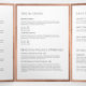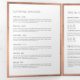 Um uísque de ouro rosa metálico falso é simplesmente estilizado com seu nome ou nome comercial em um tipo limpo neste folheto triplo. Uma impressão na moda para o seu negócio de produtos cozidos ou café. Atualize o texto personalizável para ajustado de sua marca e personalize os detalhes em todo o folheto para seu próprio uso. Estas brochuras 5x7 são perfeitas para exibir suas listas de preços e menu de serviços ou descrever sua linha de produtos. Adicione fotos adicionais para ainda mais personalização. Um marketing de excelente para entregar aos clientes ou para apresentar sua empresa rapidamente. Entre em contato com o designer para obter ajuda com variações especiais de configuração ou de layout. Arte e design © 1201AM Design Studio | www.1201am.com