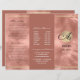 Textura de folha de folhas de cor-de-rosa e de monograma brilhante. Modelo de folheto triplo. Lista de preços de serviço com blocos de informações. Não vem dobrado. Você terá que dobrar brochuras quando o pacote chegar. Montagem básica de excelente para salões de beleza, hairstylist, salões de unhas, restauração de comidas ou outros negócios. Azul