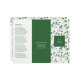 Brochura moderna de três vertentes de negócios com um padrão verde simples, mas elegante.