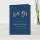LEAH ・ Este folheto do programa de casamento azul e rosa é perfeito para casamentos românticos e elegantes. A paixão é trazida pela letra fofa escrita manuscrita na textura "faux" da folha de ouro rosa, enquanto o fundo do marinho na moda combinado com o texto da cópia branca adiciona um toque de preciosidade. Esta coleção coordena-se bem com celebrações glamourosas, especialmente para eventos de interior, outono ou inverno.