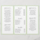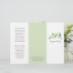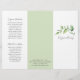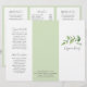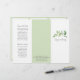 Brochura elegante com três vertentes, apresentando um design simples com uma cor d'água rústica pintada com cintilação verde junto com o nome da sua empresa no painel frontal. O painel traseiro tem suas informações de contato sobre uma faixa de verde correspondente e o painel da dobra interna tem dois cabeçalhos e caixas de texto. O dentro tem vários modelos para obter informações sobre sua empresa nos painéis externos e uma lista de preços no painel médio sobre o branco, cercada por uma borda verde. Este design botânico é excelente para um salão de beleza.