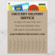 Saiba mais sobre o seu negócio de serviços de compra e de entrega de comidas com um panfleto atraente. Este folheto apresenta uma ilustração do estilo de fundo de uma mercearia ou de um saco de papel marrom do supermercado ou de um saco cheio de itens de comida com bastante espaço para descrever a sua empresa. A parte inferior deste panfleto tem um design de faixa de estilo rasgado.