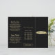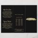 Brochura triplicada moderna com um traço de tinta abstrato dourada e seu nome em um roteiro elegante de pincel sobre fundo preto. O painel traseiro tem suas horas de operação e informações de contato. O painel da dobra interna tem dois cabeçalhos e caixas de texto. O dentro tem vários modelos para obter informações sobre sua empresa nos painéis externos e uma lista de preços no painel do meio. Ambos os lados têm guias dobráveis que podem ser removidos clicando no botão "personalizar". Uma simples brochura triplicada com um toque feminino, perfeita para um salão de unhas, salão de beleza ou cabeleireiro.