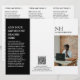 Brochura moderna triplicada (aparece desdobrada) com um simples e mínimo design preto e branco com seu monograma em negrito junto com seu nome comercial e foto na frente. O dentro tem a sua lista de preços/menu de serviço e a parte de trás tem as suas informações de contato e o código QR opcional. Você pode remover as marcas triplicadas do código QR na ferramenta de edição de design.