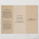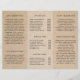 Panfleto rústico tríptico com fundo de papel marrom falso. A frente tem o nome da sua empresa com floreios em uma fonte elegante de letra manuscrita, juntamente com o seu título ou serviço. O painel traseiro tem suas informações de contato e o painel de dobra interna tem dois cabeçalhos e caixas de texto. O interior tem vários modelos para informações sobre o seu negócio nos painéis externos e uma lista de preços no painel do meio. Este design simples e feminino é ótimo para um negócio de artesanato feito à mão.