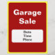 Use esses folhetos de aparência profissional personalizáveis brilhantes com texto branco sobre fundo vermelho e borda amarela para anunciar sua venda de garagem, ou venda de garagem, ou as compradas de caridade e vendas de lojas prósperas nas quais você está envolvido. Atraia mais clientes e ganhe mais. É parte de uma linha de produtos que inclui etiquetas de preços e adesivos para aqueles que querem vender bens em segunda mão em vendas de garagem, vendas de garagem, mercados de pulgas, e para compro de caridade e proprietários de lojas de produtos de caridade. Muito fácil de personalizar. Use as opções personalizadas para alterar o tamanho do papel ou use o botão Personalizar para personalizar totalmente o design. Você pode mudar o texto para algo diferente, como 'Yard Sale' ou o nome da caridade que você representa, se você estiver financiando a criação dessa forma. Embora o modelo vermelho esteja fixo, você também pode alterar a fonte, o tamanho e a cor do texto e a borda amarela (personalizar > editar > fundo).