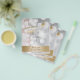 Brochuras sobre extensões Eyelash Modernas e Douradas.