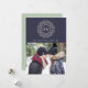 O design chic e alegre apresenta "JOY" cercado por uma coroa de medalhão de marfim, morango e sábio verde, num fundo azul profundo da meia-noite para um belo contraste. Adicione sua foto favorita da família e personalize com seu nome de família e o ano. Para ajustar o espaçamento de saudação, nome e ano, use a função "Personalizar" para mover elementos. Uma escolha única e elegante para seus cartões de natal!
