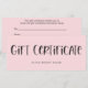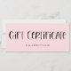Este certificado de presente elegante e moderno apresenta um fundo rosa pálido com tipografia manuscrita preta caprichosa.
