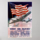 Este poster de Recrutamento do Exército da Segunda Guerra Mundial apresenta três Bombardeiros do Exército voando pelo céu e uma bandeira americana. Ele diz: "Mantenha-os voando é o nosso grito de batalha! Precisavam de homens lutadores de primeira classe. Aplique-se hoje em qualquer Centro de Recrutamento do Exército." Celebrar a História Americana e WW2 com este produto de poster de guerra vintage restaurado digitalmente da "The War Is Hell Store". Quer mais produtos militares e históricos? Check-out