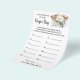 Animais Florestais O que está no cartão de Chá de fraldas do saco de fralda. Mude a redação para o design. Para personalização adicional (altere o número de itens e qualquer outro texto, cor da fonte, estilo da fonte ), clique em personalizar, role para baixo e clique no link "clique para personalizar mais". COMO JOGAR: Preencha um saco de fralda com 12 elementos essenciais para bebês, os convidados anotarão itens para bebês que pensam que estão no saco de fraldas. A pessoa com os palpites mais corretos ganha.
