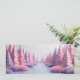 Foret de sapins roses et pompons en papier découpé et plié, façon origami.