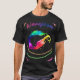 Uma combinação entre um desenho multicolore digital, fonte multicolore e linhas digitais como um arco-íris.