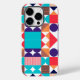 Abstrato geométrico iphone 14 pro case mate em cores azul, turquesa, vermelha, preta e laranja.
