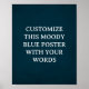 Eleve qualquer espaço com este poster/sinal personalizável, com um fundo azul escuro projetado por Toni. Este fundo é de uma pintura digital original, de modo que tem mais profundidade e interesse do que apenas um fundo de cor simples. O pano de fundo exclusivo para a sua citação ou informação personalizada faz com que o seu texto personalizado se sobressaia perfeitamente. Quer queiram mostrar uma citação favorita, verso bíblia, detalhes de eventos ou um ditado significativo, este impressão personalizável permite-vos dar vida às suas palavras de uma forma ousada e artística. Uma mistura perfeita de humor e singularidade, esta design transforma qualquer mensagem numa espantosa peça visual central. Clique em "Personalizar este design" para adicionar a sua citação e/ou clique em "Editar usando a ferramenta design" para alterar o texto e a cor do texto. O cenário continuará o mesmo. As fotos do Mockup mostrarão exemplos desse poster enquadrado/com correspondência. Você receberá apenas impressão ou download digital. Procure na minha loja mais fundos exclusivos para personalizar posters. Estes designs só foram encontrados no meu compro! Obrigado pelo seu interesse, agradeço o seu negócio!