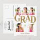 Na moda e anúncio de festa de formatura branca moderno com a inscrição dourada "FORMANDO" e espaço para 6 fotos. A parte de trás deste cartão tem tudo o que você precisa desde o seu anúncio, até o seu convite de formatura, até o seu convite de festas formando.