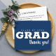 Uma nota de agradecimento plana com as palavras "Classe de obrigados de FORMANDO 20XX você" em letras brancas em negrito em um fundo azul tem espaço para uma mensagem impressa no verso ou deixe vazio para escrever à mão. **Os ENVELOPES são vendidos separadamente. CORRESPONDENDO a itens na nossa loja.