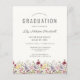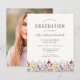 Uma bela borda floral de aquarela de flores silvestres decora a borda inferior deste convite de festa de formatura de vassouras. Personalize o texto da cinza de carvão em um fundo de marfim com o nome do formando em script de escrita manual; o ano da escola e da classe em sans serif; e os detalhes de data, local e RSVP em fontes de serif. Substitua facilmente a imagem de exemplo no verso por uma foto vertical do seu formando.