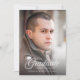 Este cartão de anúncio de graduação de fotos contém uma placa de massa e a palavra "Formando" em um script contra um gradiente escuro para oferecer contraste. O verso tem um padrão geométrico branco em relação a uma cor de fundo editável. Para alterá-lo, clique em personalizar, selecione o lado traseiro da placa, selecione o plano de fundo e altere a cor. Esta é uma forma excelente de combinar o anúncio com as cores da escola. Personalize-o substituindo o texto do marcador de posição. Para obter mais opções, como alterar a fonte, seu tamanho e espaçamento entre letras, clique no botão "Personalizar". *Observe que a Marca d'água do Zazzle que aparece na visualização de zoom NÃO aparecerá no produto impresso final. © Rosewood e Citrus