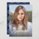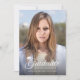 Este cartão de anúncio de graduação de fotos contém uma placa de massa e a palavra "Formando" em um script contra um gradiente escuro para oferecer contraste. O verso tem um padrão geométrico branco em relação a uma cor de fundo editável. Para alterá-lo, clique em personalizar, selecione o lado traseiro da placa, selecione o plano de fundo e altere a cor. Esta é uma forma excelente de combinar o anúncio com as cores da escola. Personalize-o substituindo o texto do marcador de posição. Para obter mais opções, como alterar a fonte, seu tamanho e espaçamento entre letras, clique no botão "Personalizar". *Observe que a Marca d'água do Zazzle que aparece na visualização de zoom NÃO aparecerá no produto impresso final. © Rosewood e Citrus