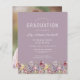 Uma bela borda floral de aquarela de flores silvestres decora a borda inferior deste convite de festa de formatura de vassouras. Personalize o texto branco em um fundo mauve, com o nome do formando em script de escrita manual; o ano escolar e de classe em sans serif; e os detalhes de data, local e RSVP em serif. Substitua facilmente a imagem de exemplo no verso por uma foto vertical do seu formando.