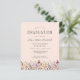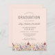 Uma bela borda floral de aquarela de flores silvestres decora a borda inferior deste convite de festa de formatura de vassouras. Personalize o texto da cinza de carvão em um fundo cor-de-rosa-pincelado com o nome do formando em script de escrita manual; o ano da escola e da classe em sans serif; e os detalhes da data, local e RSVP na fonte serif. A parte traseira da placa é robusta e robusta.