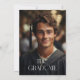 Este convite à formatura continha um chapéu de formando com uma coroa floral sobre uma tipografia azul-branca e azul-escura personalizável. Perfeito para convidar seus amigos e família para uma cerimônia de formatura.