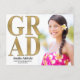 Convite/anúncio de festa de formatura branca com a inscrição em ouro "FORMANDO". Adicione sua foto à frente. A parte de trás deste cartão tem tudo o que você precisa desde o seu anúncio, até o seu convite de formatura, até o seu convite de festas formando.