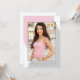 Este anúncio de graduação moderno apresenta um padrão geométrico rosa e cinza com a foto do formando's destacada no meio e seu nome abaixo.