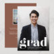 Anúncio simples e moderno de graduação de fotos com um toque minimalista apresenta "formando" na parte inferior, com seu formando e escola embaixo, e seu ano de formatura trabalhou na design. Ideal para segundo grau, faculdade ou graduação avançada. Adicione uma mensagem pessoal ao verso, juntamente com uma foto adicional.