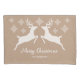 A design da silhueta original de Destei de dois veados virados um para o outro junto com alguns flocos de neve decorativos. A cor de fundo é bege. Há também duas áreas de texto personalizáveis.