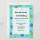 Círculos modernos do meio século e estrelas em um esquema colorido de cores retrógradas para um casamento divertido e casual. Personalize todo o texto para sua própria redação; exclua ou adicione uma linha, se necessário.