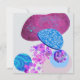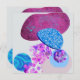 Design moderno com uma variedade de formas em tons de roxo, ciano, azul e rosa.