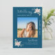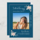 Um convite à formatura azul moderno e minimalista para a classe de 2022. Estes anúncios únicos e elegantes são maravilhosos para esta ocasião. Os toques florais cor-de-rosa macio são sutis para deixar a radiância da sua fotografia brilhar.