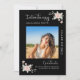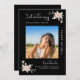 Um convite à graduação moderno e minimalista a preto e branco para a classe de 2022. Estes anúncios únicos e elegantes são maravilhosos para esta ocasião. Os toques florais cor-de-rosa macio são sutis para deixar a radiância da sua fotografia brilhar.