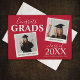 Convite moderno de festa de formatura dupla, que apresenta 2 fotos dos formandos. O cartão tem texto modelo que diz 'PARABÉNS FORMANDOS, SEUS NOMES, ANO DE FORMATURA e NOME DA ESCOLA OU FACULDADE'. Com um modelo de convite elegante no verso.