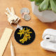 Este chaveiro apresenta flores amarelas ouros da forítica em um fundo preto puro. Forsythias é um dos primeiros arbustos florescentes em primavera. Quando esta flor mostra suas pétalas de ouro brilhantes no jardim, sabemos que o inverno se foi por mais um ano.