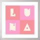 Poster de nome de bebê de quatro letras para uma (bebê recém-nascido) e seus pais em cores bege rosa-quente. As 4 letras são personalizáveis ajustando o nome das crianças. As letras são escolhidas em caracteres bonitos para que pareçam figurativas. As cores podem ser editadas de acordo com o desejo individual.