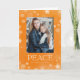Imprima todos na sua lista de cartões de Natal com um cartão elegante de cartões de natal floco de neve. O cartão de Natal exclusivo mostra a sua foto favorita na frente com flocos de neve brancos na borda contra um fundo de cor d'água laranja. "Paz" é apresentado numa letra serif moderna de tendência com o seu nome ou texto personalizado mostrado abaixo. O dentro do cartão de feriado floco de neve apresenta a sua mensagem personalizada. A parte traseira da placa de saudação possui espaço para uma foto adicional. O design coordena-se com a nossa coleção de cartões de Natal da Paz do Fosco.