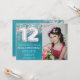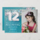 12 de Foto: Aniversário de Convite Teal e 12 de Lata de Lata e Lata de Prata por um convite de aniversário de 12 anos com modernos roteiros escrevendo e balões de folha divertida.