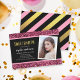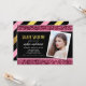 O Convite de aniversário de Fotografia Rosa-Glitter apresenta as palavras "Doce Dezesseis" em uma fonte sans serif divertida em uma folha de ouro falso, com brilho rosa superior e inferior e um fundo central preto na frente. O convite tem um padrão de listras de folha de ouro rosa, pretas e sujas. Personalize-o substituindo o texto do marcador de posição e substitua a foto do marcador de amostra/marcador de posição por sua própria foto. Para obter mais opções, como alterar a fonte e seu tamanho/cor ou o espaçamento entre letras, clique no botão "Personalizar". *Observe que a Marca d'água do Zazzle que aparece na visualização de zoom NÃO aparecerá no produto impresso final. Espaço reservado Fotografia © Storytree Studios, Stanford, CA Invitation © Rosewood and Citrus