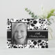 Foto personalizada 18º Convites de aniversário em um padrão floral branco e preto elegante. Adicione suas fotos e detalhes da festa para um convite de aniversário exclusivo e na moda.