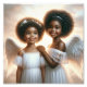 Poster com duas angélicas afro-americanas adoradas com sorrisos e asas brancas.