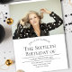Um convite de aniversário 60º com texto de cinza em fundo branco. A foto é uma foto de modelo e deve ser trocada por você. Basta adicionar sua foto e informações, adicionar este convite ao seu carrinho e depois desfrutar deste aniversário de etapa! Foto 60 Aniversário de Design de Natal | Melissa Patton - Designer