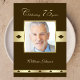 Este 75º convite de aniversário em castanho com sotaques de ouro mostra sua foto no centro, junto com um lugar para você colocar o nome da honestidade de aniversário abaixo da foto. Uma maneira muito elegante e pessoal de convidar convidados para uma 75ª festa de aniversário. Direitos autorais