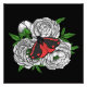Ilustração vetorial desenhada à mão da mariposa cinabar sobre um buquê de flores de pénia