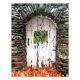 Uma parede de pedra numa área arborizada com uma porta que leva a?